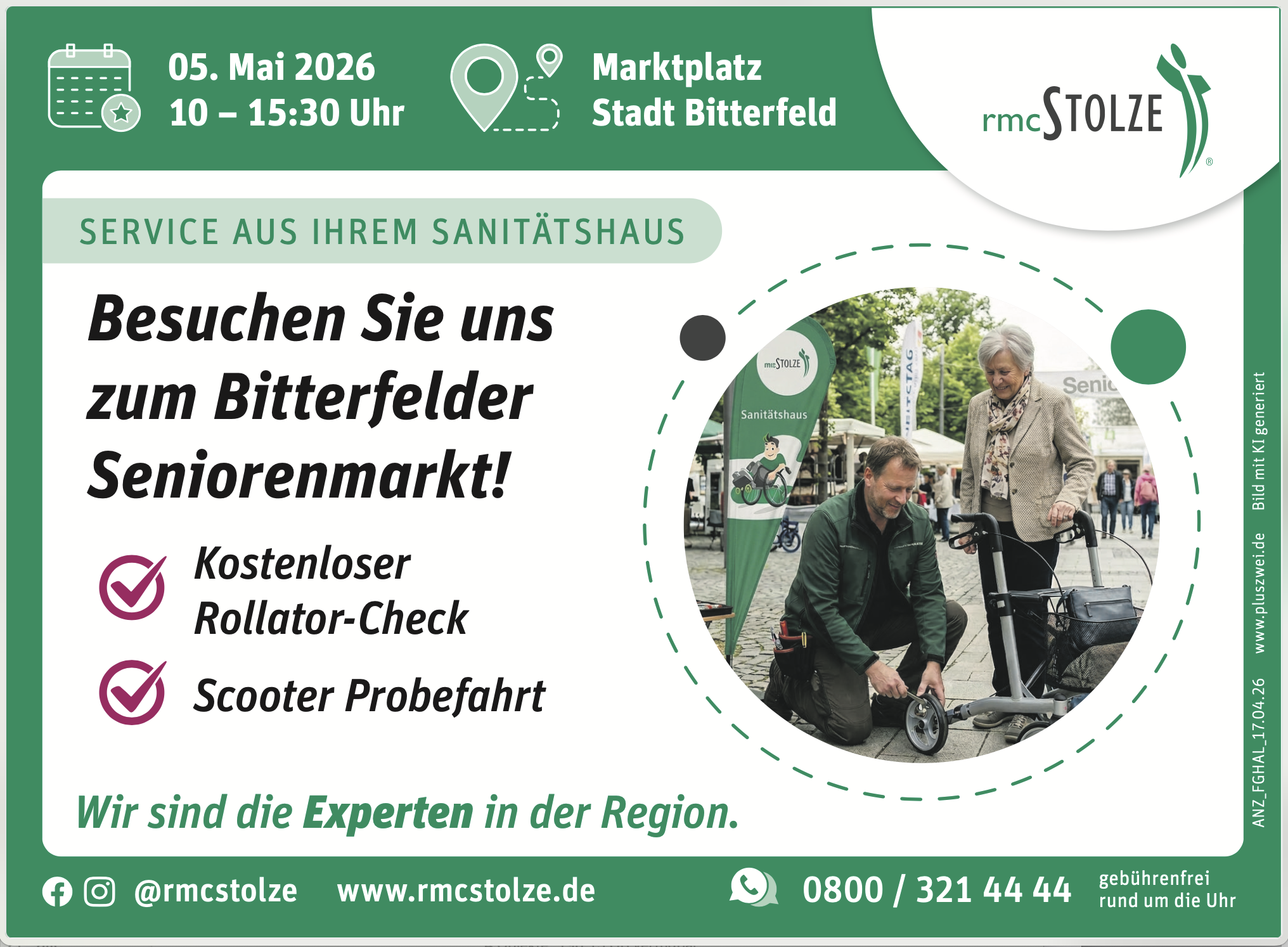 Am 05. Mai 2026 von 10:00 bis 15:30 Uhr finden Sie uns auf dem Marktplatz in Bitterfeld.